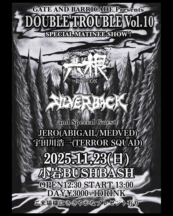 六根ROCCON / SILVERBACK , and Special Guest : JERO(ABIGAIL/MEDVED) / 宇田川浩一(TERROR SQUAD)