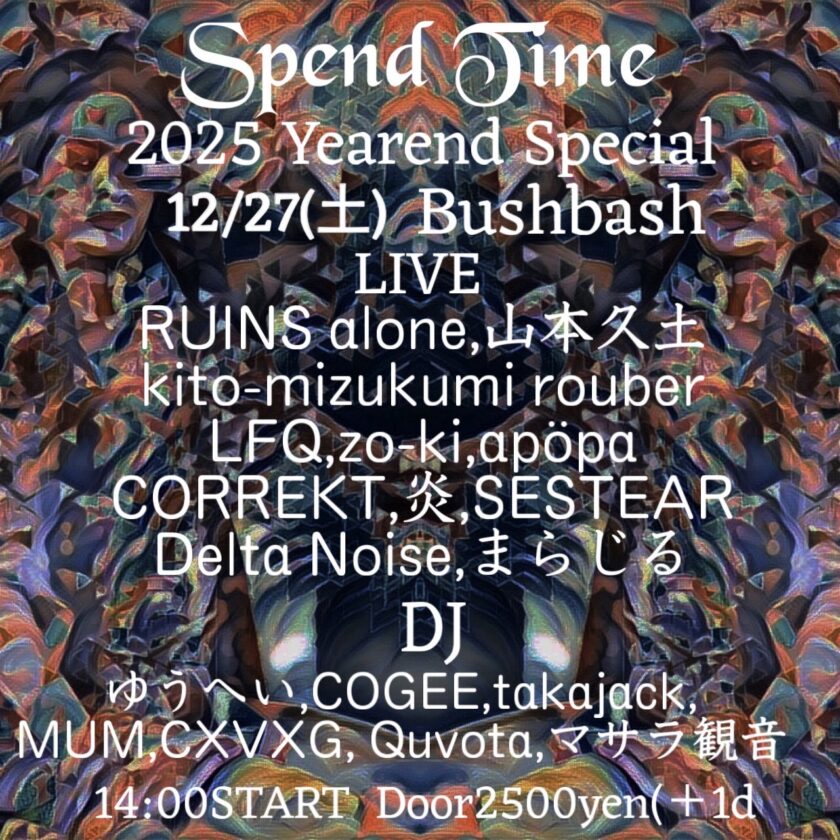 live: RUINS alone / 山本久土 / kito-mizukumi rouber / LFQ / まらじる / CORREKT / apöpa / 炎 / SESTEAR / zo-ki / Delta Noise , dj: ゆうへい / COGEE / Takajack / MUM / CXVXG / Quvota / マサラ観音