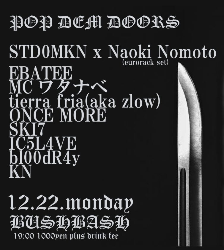STD0MKN × Naoki Nomoto (eurorack set) / MC ワタナベ / ebatee / tierra fría(aka zlow) / ONCE MORE / SKI7 / IC5L4VE / bl00dR4y / KN