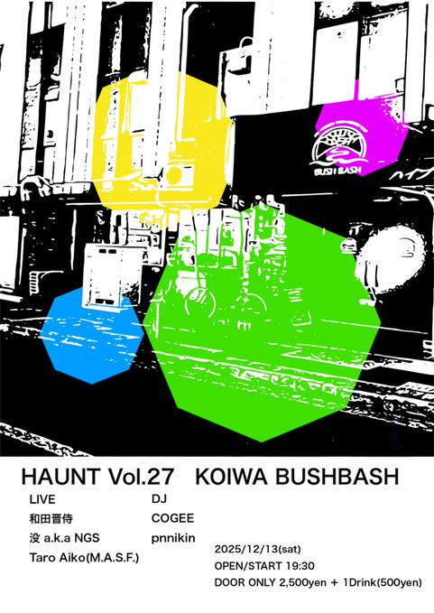 LIVE : 和田晋侍 / 没 AkA NGS / Taro Aiko(M.A.S.F.) , DJ : COGEE(BLACK SHEEP) / pnnikin